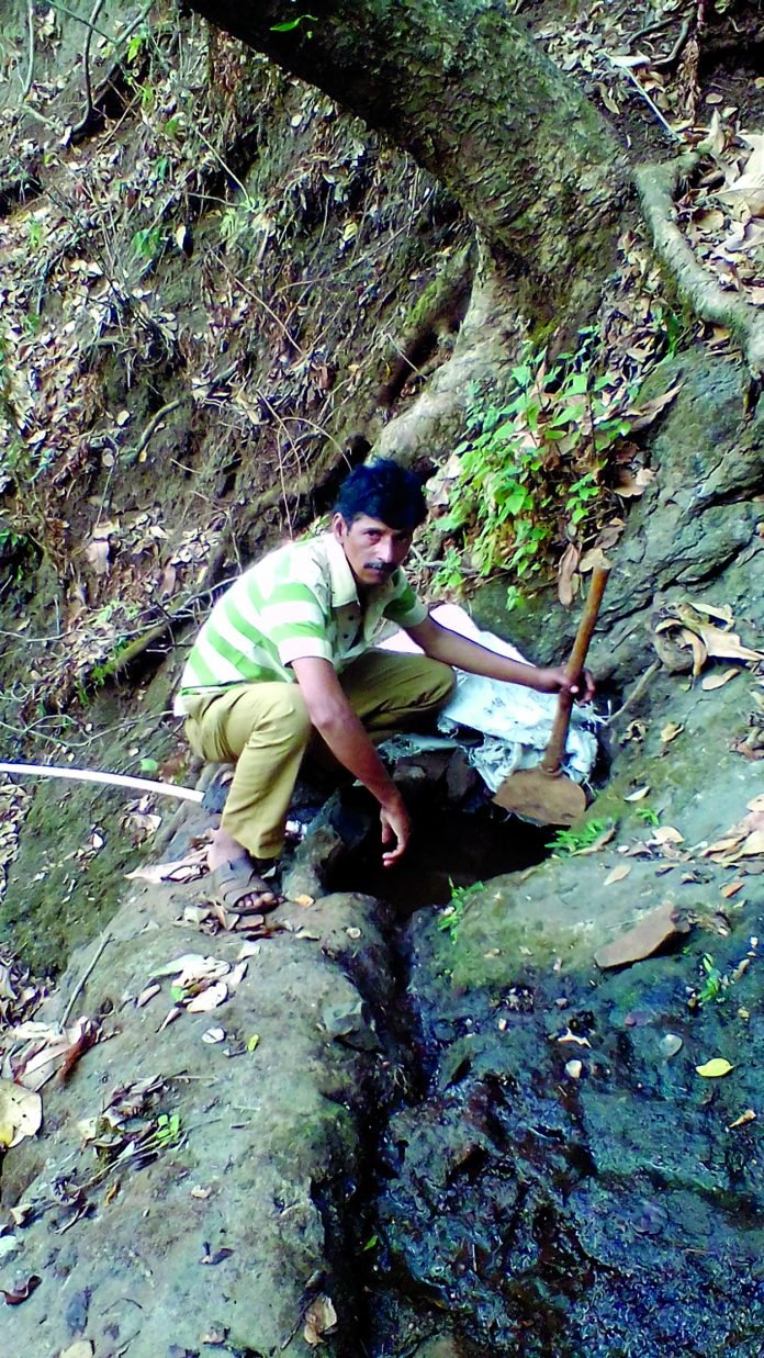 परळी : (अल्पेश लोटेकर) दुर्गम भागातील कुसुंबी मुरा गावातील निसर्गप्रेमी रमेश तात्याबा चिकणे यांनी वन्य पशू पक्ष्यांची तहान भागवण्यासाठी निद्रिस्त अवस्थेतील नैसर्गिक झऱयाची साफसफाई करून नवसंजीवनी दिली. दगड माती आणि पालापाचोळ्याने मुजत चाललेल्या नैसर्गिक झऱयाची साफसफाई करून पाणी साठून राहण्यासाठी प्रयत्न केले आहेत. त्यामुळे या परिसरातील वन्य पशू पक्षी आणि पाळीव प्राण्यांना पिण्याच्या पाण्यासाठी हक्काचा पाणवठा उपलब्ध झाला आहे. सातारा शहराचा पश्चिमेकडील भाग हा वनसंपदा आणि जैवविविधतेने नटलेला आहे.