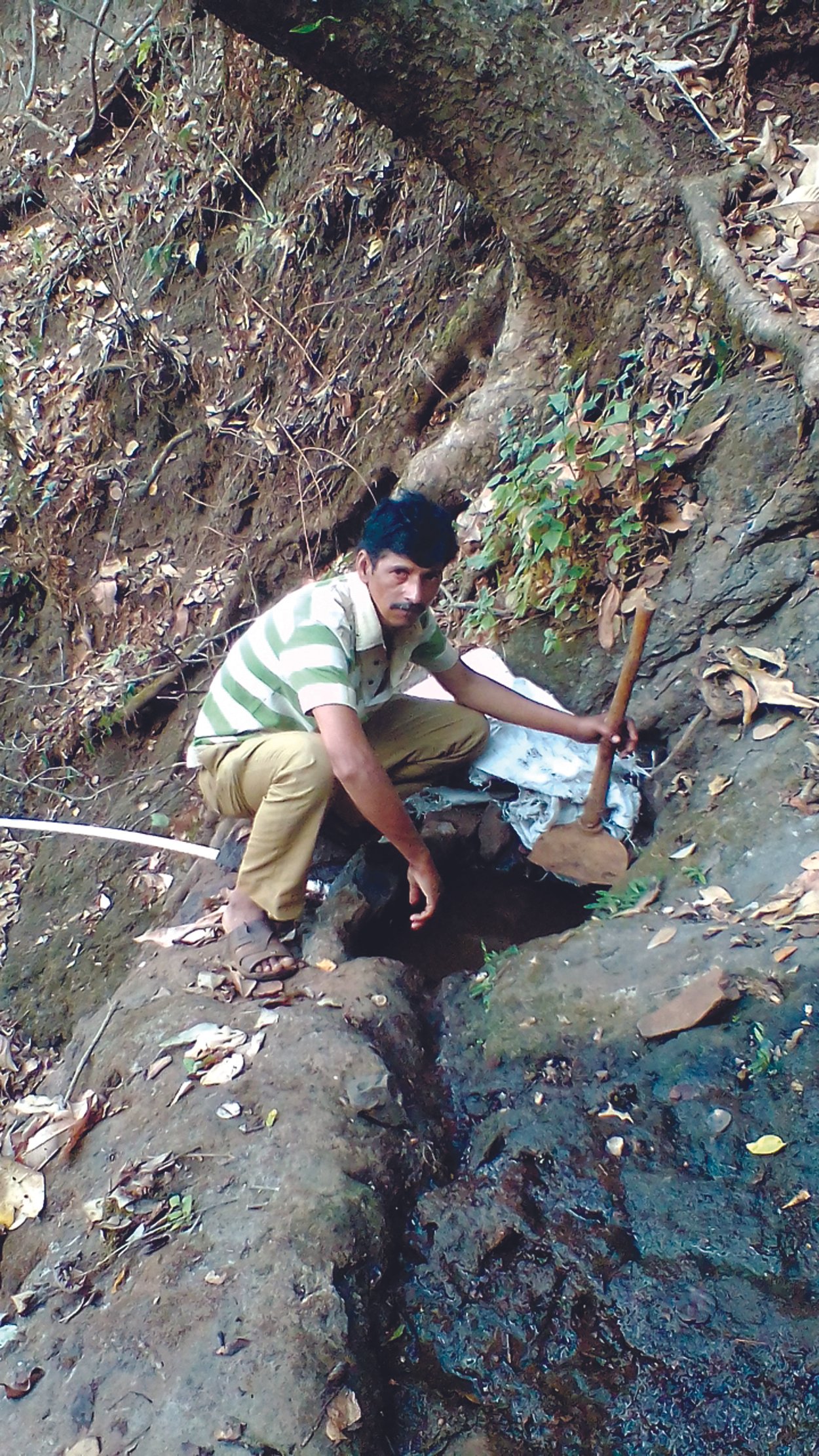 नैसर्गिक झर्यावर बनवला पाणवठा; मुक्या पशुपक्ष्यांची तहान भागवण्याचा प्रयत्न