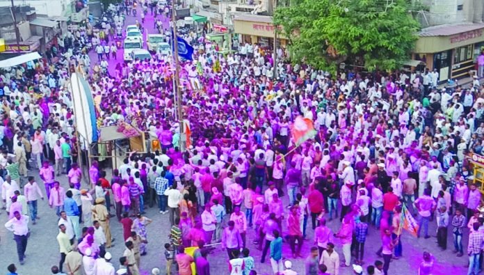 फलटण: माढ्याचा गड जिंकल्यावर फलटणच्या सुपुत्राचे जंगी स्वागत करण्यात आले. यावेळी रणजितसिंह नाईक निंबाळकर यांची मिरवणूक काढण्यात आली. यावेळी त्यांचेबरोबर आ.जयकुमार गोरे, मा.आ.दिलीप येळगावकर उपस्थित होते.