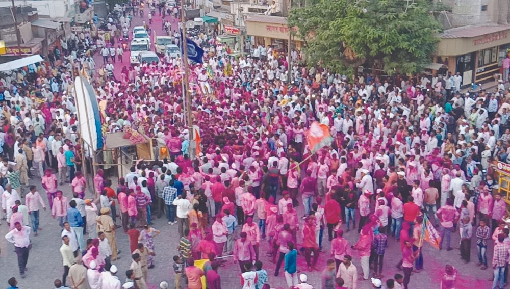 अतिशय अटीतटीच्या लोकसभा निवडणुकीत रणजितसिंह नाईक निंबाळकर यांनी माढा लोकसभा निवडणुकीत जोरदार मुसंडी मारीत फलटणचे नाव लोकसभेच्या माध्यमातून तब्बल 23 वर्षानंतर कोरल्यावर पहिल्यांदाच फलटण मध्ये रणजितसिंह नाईक निंबाळकर आल्यावर त्यांचे स्वागत क्रा. नाना पाटील चौकात गुलाल ढोल ताशांच्या गजरात जेसीबीमधून गुलाल उधळत उघड्या जीपमधून मोठी मिरवणूक काढण्यात आली. यावेळी त्यांचे स्वागत करण्यासाठी फलटणकर व युवक मोठ्या संख्येने सहभागी झाले होते.