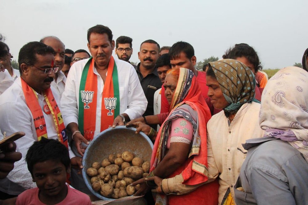 सातारा लोकसभा मतदारसंघाचे उमेदवार श्री. छ. उदयनराजे भोसले व कराड उत्तर विधानसभा मतदारसंघाचे उमेदवार धैर्यशील कदम यांच्या कराड उत्तरमध्ये प्रचार पदयात्रा सुरू आहेत. या दरम्यान शेनवडी ता.खटाव गावच्या हद्दीत त्यांची रॅली निघालेली असताना एका शेतात बटाटे काढण्याचे काम सुरू होते.