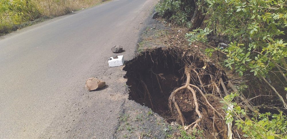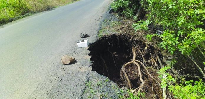 सातारा डबेवाडी मार्गानजिक रस्ता खचला; वाहतूक धोकादायक