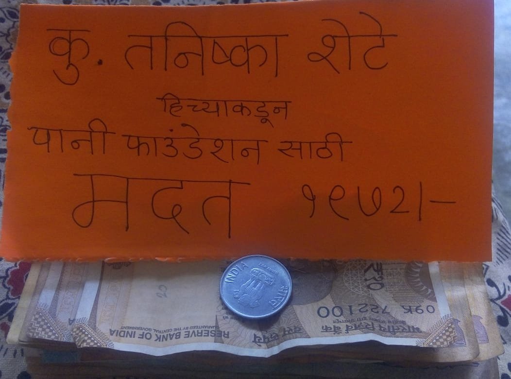 ह्या मुलीस पाणी ची आज तरी जास्त वैयक्तिक गरज नाही,,,ज्यांना शेतकरी बांधवाना या पाण्याची गरज आहे त्यांचे डोळे उघडविणारे पाऊल तनिष्का ने उचलले आहे. तिच्या कुटुंबातील तिच्या वडिलांनी शरद शेटे 10000/-,आई रूपाली ने10 लिटर दिसेल मशीनसाठी,आजी ने 10 लिटर डिझेल, पणजी ने 5 लिटर डिझेल,अशी कुटुंबातील सर्वांनीच या पाणीदार गावासाठी अनमोल मदत केली आहे.पैसे कुणाकडे किती आहेत हे महत्त्वाचे नसते तर महत्त्वाचे असते समाजास आपण ही देने लागतो यांची.