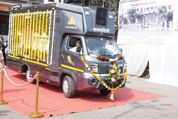 सातारा:- सातारा येथील सामाजिक कार्यात अग्रेसर असलेल्या श्री बालाजी चॅरिटेबल ट्रस्टच्यावतीने अद्यावत शववाहिनीचे प्रजासत्ताक दिनी गांधी मैदान राजवाडा येथे श्री. सुभाष दोशी, श्री. सुधाकर पेंडसे, श्रीमती शिल्पा सातपुते व श्री. राजेंद्र चोरगे यांच्या हस्ते लोकार्पण करण्यात आले यावेळी विविध क्षेत्रातील मान्यवर उपस्थित होते.