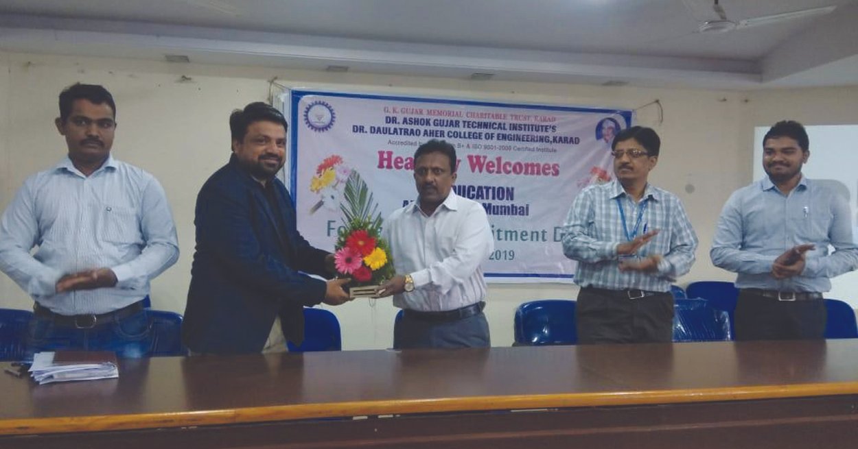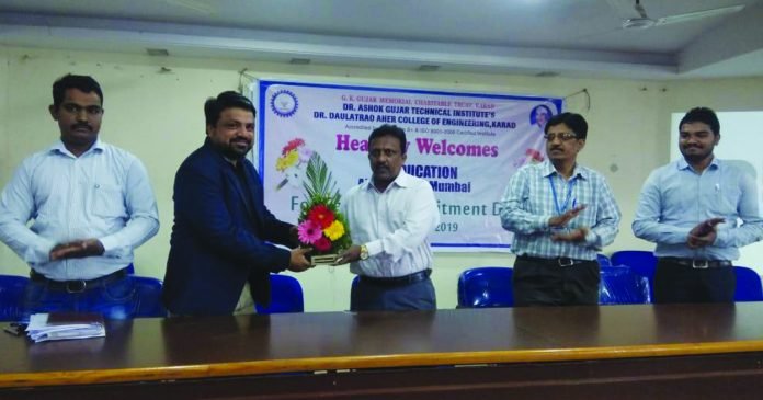 कराड: येथील डॉ.अशोक गुजर टेक्निकल इन्स्टिट्युटस् डॉ.दौलतराव आहेर अभियांत्रिकीच्या अंतीम वर्षाचे इलेक्ट्रॉनिक्स अ‍ॅन्ड टेलिकम्युनिकेशन इंजिनिअरींगचे कु.माया डोईफोडे, मयूर साळुंखे, कु.प्रतिक्षा शिंदे, कु.अरूणा मात्रे, कु.श्‍वेता गरूड, सिध्दार्थ भोकरे, कु.नेहा गाडे, कु.स्नेहल शिरतोडे, कु.कोमल शिंदे, कु.निशा कदम, कु.निकिता चिंगळे व उत्कर्ष मोरे मेकॅनिकल इंजिनिअरींगचे विद्यार्थी रोहन जगदाळे, अफताबअहमद काझी, हर्षल शिंदे, मयूर सावंत, सिध्देश चव्हाण, कु.मयुरी मोहिते, कु.अनुजा पाटील, अमर घारे, विशाल घाडगे, कु.मयूरी चव्हाण, ओमकार भागवत व शुभम पवार कॉम्प्युटर सायन्स इंजिनिअरींगचे कु.आयेशा खैरतखान, कु. नम्रता खैरमोडे, राहूल कालेकर, कु. अपूर्वा नांगरे व कु.ज्योती माळी आणि सिव्हील इंजिनिअरींगचे कु.प्रज्ञा यादव, असिफ डांगे, सिध्दार्थ ओसवाल, कु.ऐश्‍वर्या अटकर व कु.ऐमन शेख या 34 विद्यार्थ्यांची मुंबई येथील आर.के.एज्युकेशन अ‍ॅप कंपनीच्या कॅम्पस् मुलाखतीमध्ये वार्षिक तीन लाख पन्नास हजार एवढया वेतनावर अभिनंदनीय निवड झाली.